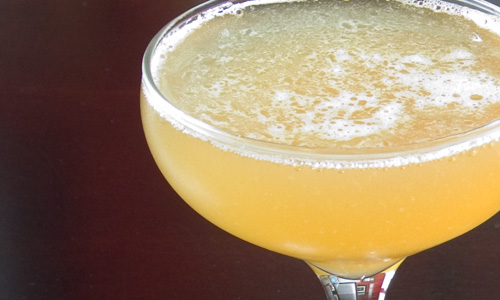 Misture, no liquidificador, todos os ingredientes com gelo e sirva em um copo de martini.