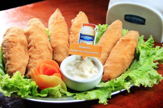 Enroladinho suÃno . Filé de lombo suÃno recheado com muçarela, presunto e bacon, servidos empanados. Acompanha molho especial do chef (catupiry, cebola e Hellmann’s).